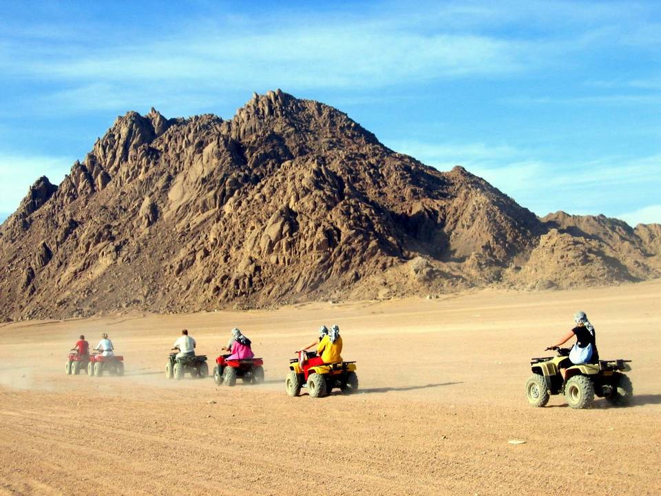 Ride out into the beautiful scenery of the Sinai desert on a quad bike. Drive into the desert from Sharm and enjoy playing on the dunes. In the desert you will meet up with Bedouins who will treat you to a camel ride and a bit of Bedouin charm.