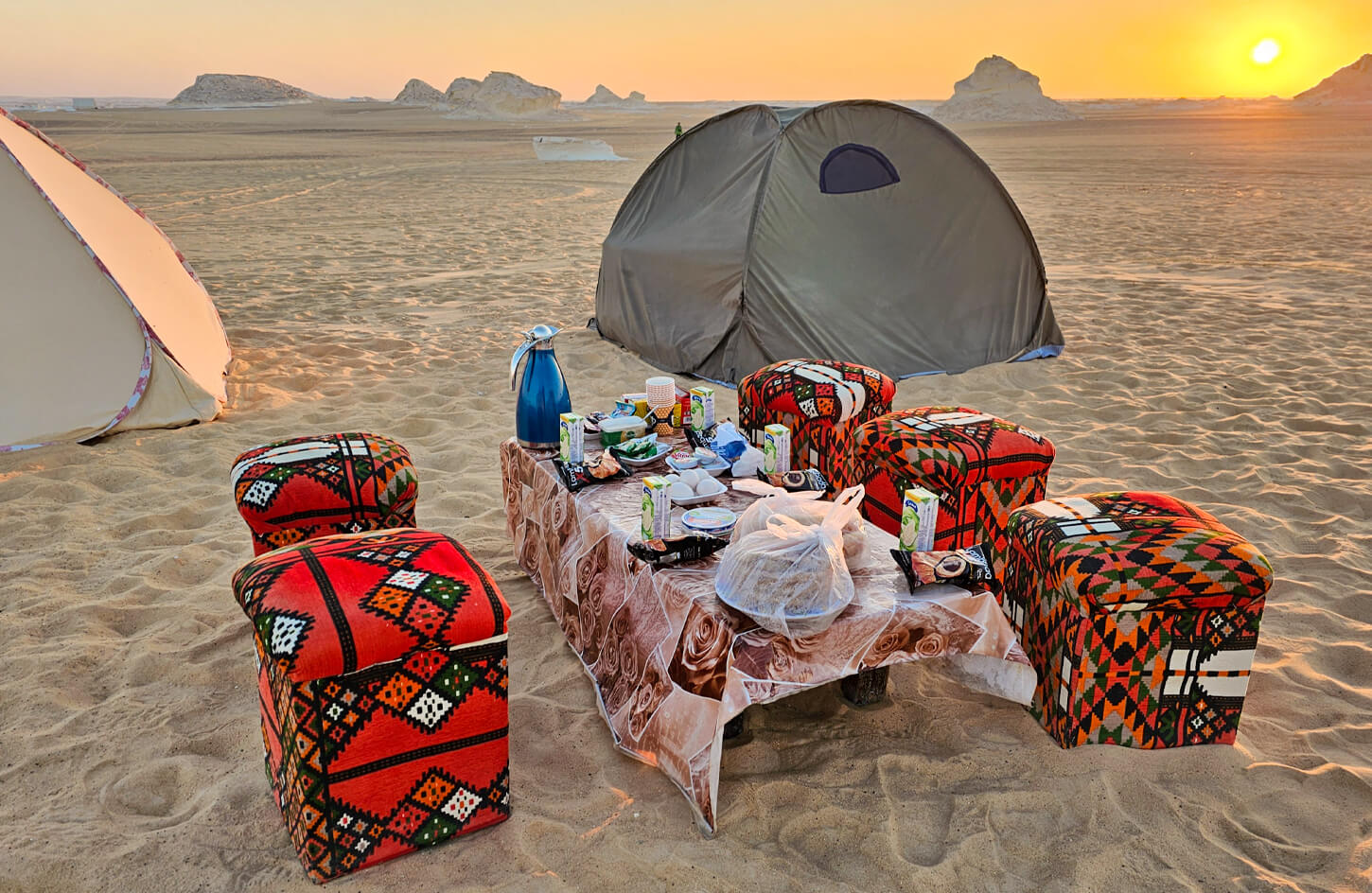 After an early start, set off for the remarkable landscapes of the White Desert, filled with wind-carved limestone formations resembling mushrooms and animals.