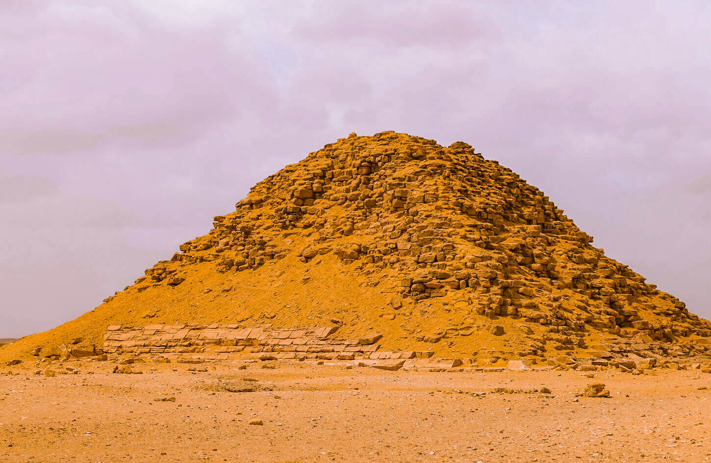 Conclude your journey at Dahshur, a lesser-visited but remarkable pyramid site. Discover the unique Bent Pyramid, which visibly shifts angle halfway up due to early design challenges, and the Red Pyramid, Egypt’s first true smooth-sided pyramid and third largest after the Great Pyramid and Khafre’s.