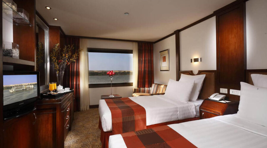 The cruise features cozy cabins with large windows, providing beautiful panoramic views of the Nile. Guests can unwind on the sun deck, savor delicious meals in the restaurant, and enjoy the comfortable lounge areas onboard.
