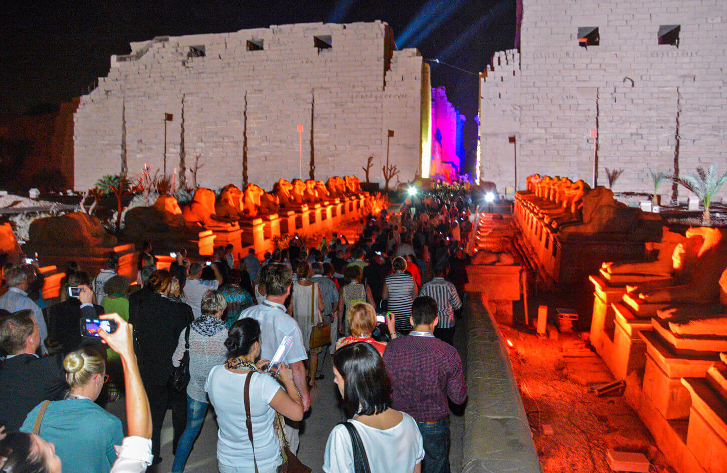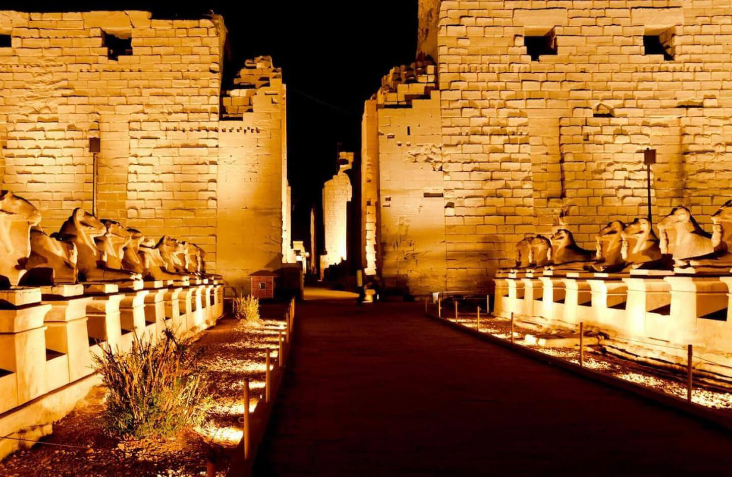 Our Luxor Tours offer you the unique opportunity to travel back in time and experience life as it was thousands of years ago. You will gain insight into ancient Egypt’s grandeur through the spectacular Sound and Light Show at the Karnak Temples, a truly unforgettable experience. The Karnak Temple, the greatest example of religious worship in history, was dedicated to the gods Amun, his wife Mut, and their son Khonsu. Construction of this awe-inspiring site began during the Middle Kingdom and continued through the Greco-Roman period.